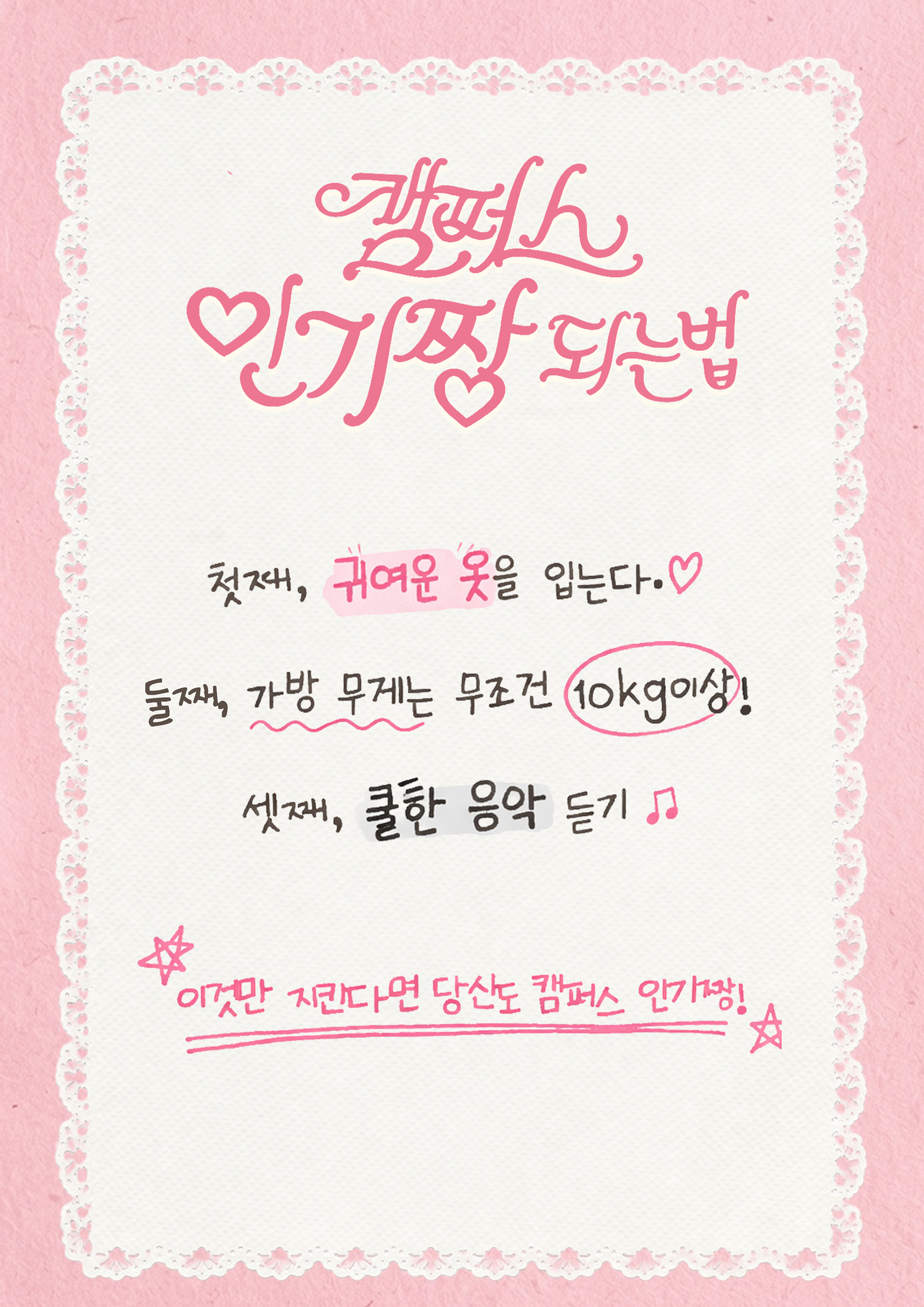 이제 내가 캠퍼스 인기짱이라는게 믿기지 않는다…