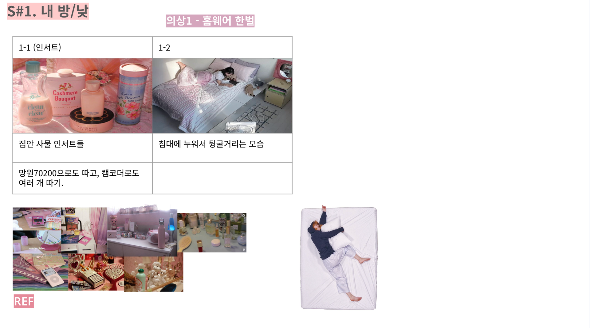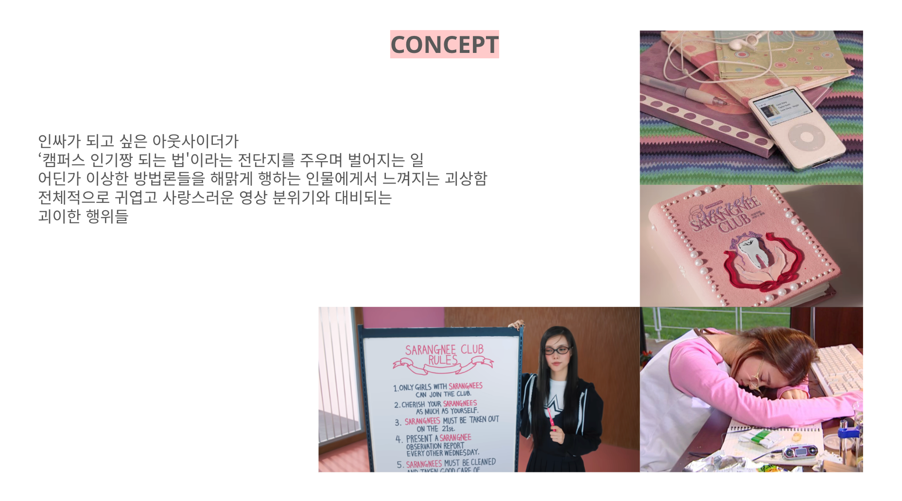 단순 브이로그 인트로지만 컨셉, 스토리라인, 무드보드, 디자인/의상 레퍼런스, 스토리보드를 꼼꼼히 작성한 후 기획안을 바탕으로 촬영하고 있습니다. 이번 영상은 '캠퍼스 인기짱 되는 법'이라는 일종의 인터넷 짤과 에브리타임 밈 '내가 서울대생이라는 게 믿기지 않는다. 왜냐면 아니니까.'를 모티브로 스토리라인을 구성했습니다. 기획, 연출, 촬영, 편집, 출연을 모두 혼자 해내야 하기도 하고, 예산을 5만원 이상 사용하지 않기 때문에 최대한 효율적으로 로케이션/소품을 선정하여 좋은 결과물이 나올 수 있게끔 촬영하는 편입니다.